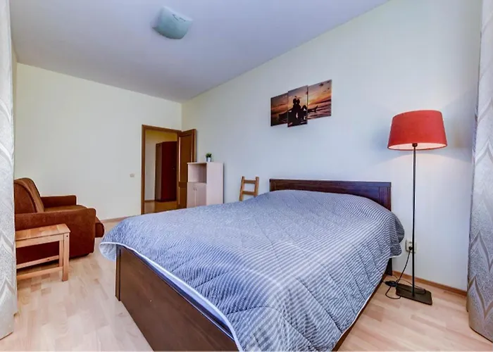 Experience ultimate comfort in the accommodation's kitchen, supplied with an electric kettle, a refrigerator, and kitchenware. Travellers can also enjoy their meals in the pizzeria Milk Bar, which is around 500 metres away. The apartment can be reached in 5 minutes on foot from nearby Palats Sportu tube station.